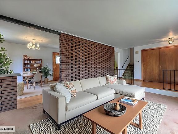 Who doesn't love the uniqueness of a mid-century multi-level home? This 1963 build has so much character to offer from the moment you step foot in the door. The brick division wall in the sunken living room adds stark contrast to the wall of windows it opposes, offering a bright and cozy living room. The dining room and kitchen also get to stylish factor from the accent wall with a classic pony wall dividing their respective spaces. Upstairs in the sleeping quarters are 3 nicely sized bedrooms, one of which, the master bedroom, has almost an entire wall of closet space. One full bathroom is also on that level. The game room, one level below the living space, has a pristinely kept wooden wall adding some old money charm to the room. The basement level has two rooms, one which has a stone brick fireplace that could be brought back to life as a den, the other being a full utility/laundry/storage room with a full bathroom. The yard is perfectly flat and has a lovely covered back deck.