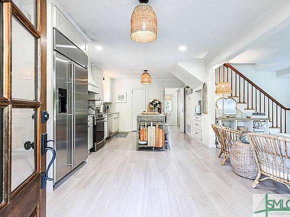 Welcome to your dream coastal retreat offering one of the most beautiful views in Savannah! Soak in the serene marsh front surroundings & unwind by your very own saltwater pond. The gourmet kitchen is a chef's delight, featuring high-end GE Monogram appliances, an island, & pantry. First floor boasts hardwood-look tile, recessed lighting, & an abundance of natural light streaming through large windows. An oversized laundry room doubles as an office, providing versatile space for work or hobbies. The first floor also includes a spacious bedroom with access to a covered patio. Upstairs, you'll find 3 additional bedrooms adorned with the charm of original refinished oak floors. The renovated bathrooms offer modern amenities while maintaining the home's timeless appeal. Whether you're enjoying the peaceful river views or entertaining in the beautifully appointed living spaces, this home is a true sanctuary that blends luxury with natural beauty. View video at https://youtu.be/k0X2iIuWoEo