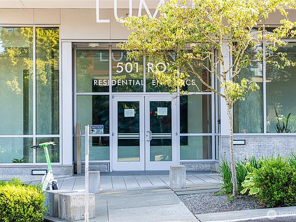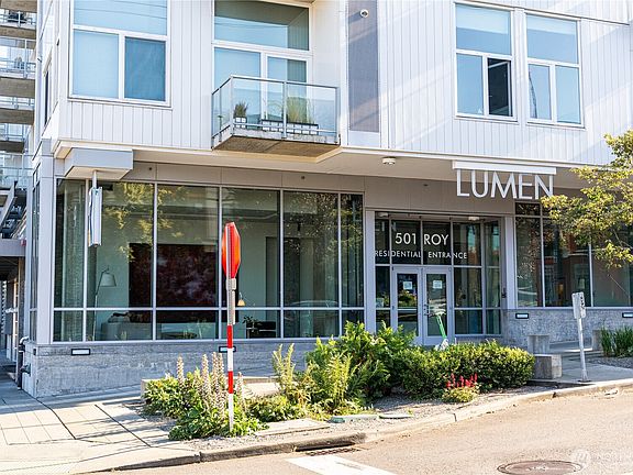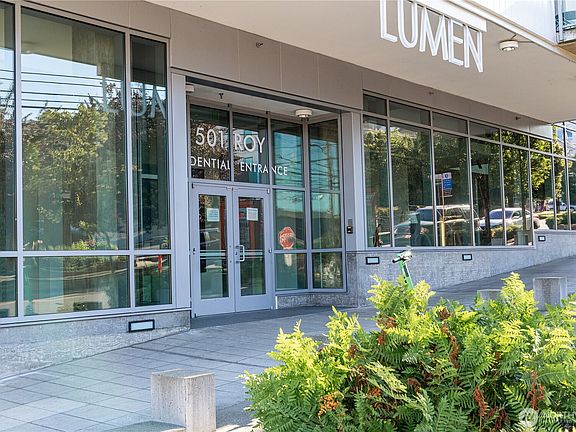 Enjoy the best of Seattle right outside your front door in this sophisticated Lumen loft! Its open layout lives large with integrated living & dining areas flowing around a sleek quartz/stainless kitchen with Euro-inspired cabinets & built-in appliances. Tall ceilings & expansive windows bring in brilliant natural light. Step out and enjoy the scenery from your private balcony, or retreat to your bedroom with built-in wardrobe, stylish 3/4 bath & convenient laundry. Your garage parking space, storage unit, community clubhouse/theater, & BBQ deck are just an elevator ride away. Stroll to South Lake Union business centers, the Seattle Center, Space Needle, & shops/dining galore from this unbeatable location. Great bike & transit access, too!