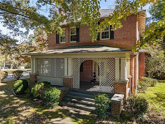 Brick two-story home in the Historical District of Kenbridge located on a corner town lot within walking distance of restaurants, stores and downtown. This fixer-upper has tons of potential just waiting for your personal touches. Some unique features include hardwood floors throughout, crown molding, French doors, ceiling fans and high ceilings just to name a few. A welcoming, covered front porch surrounded by shade trees offers privacy and ample space for relaxing. The first level consists of a foyer, sitting/family room, dining room, den/extra bedroom and kitchen. The foyer opens to a carpeted staircase that leads to the second floor. The sitting/family room has custom built cabinets for your storage needs. The dining room has a wood burning stove. The den/extra bedroom has a half bath attached for your convenience. The kitchen features a new vinyl floor, refrigerator with access to a stove, dishwasher and plenty of cabinets. A screened in back porch leads to a spacious back yard enclosed by privacy and chain linked fences. The second floor consists of three bedrooms, a large walk-in closet and full bathroom. One of the bedrooms features a counter with sink and mirror. Some furniture and appliances will convey. This can be negotiated. The property is being sold AS IS. The roof is currently in need of repair.