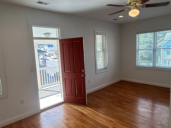 Large airy rooms filled with natural light, freshly refinished gorgeous wood floors, 2 large full shower/bath bathrooms, new appliances, upstairs laundry, great upper balcony, front and side porches, easy walking distance to downtown, friendly neighborhood.