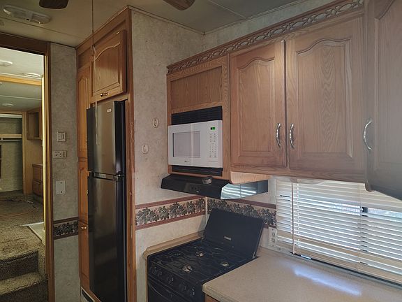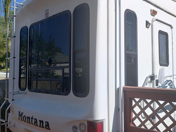 Travel trailer 29ft long inside park that is being offered to rent on a 6 month lease.