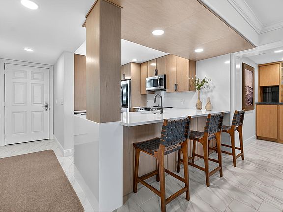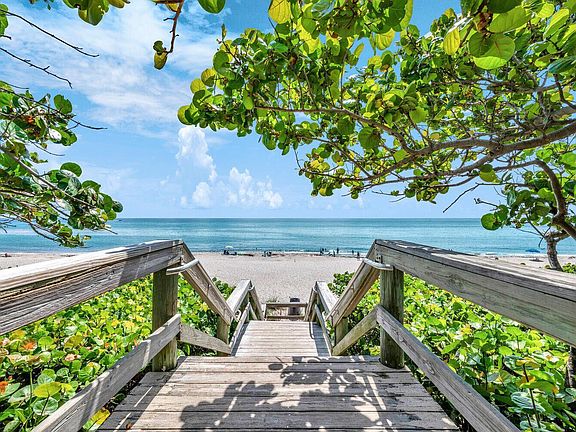 LIVE WHERE OTHERS VACATION! Fabulous Location with Amazing Direct Ocean Views!!! Beautifully and Luxuriously Renovated this top Floor Corner 2 bed 2 bath condo just steps to the beach and the turquoise waters of the Atlantic Ocean! Every detail has been thoughtfully curated & impeccably upgraded. The bright & open floor plan has floor to ceiling impact slider's in the Living areas which flood the space with natural light & provides unobstructed ocean views. The kitchen features custom wood cabinetry, quartz countertops, SS appliance package including a smart range (air fryer, convection oven), wine fridge, and modern sleek pantry & appliance cabinets. The primary suite features floor to ceiling slider's accessing a private balcony, remote custom blackout shades, a redesigned master bath with an oversized walk-in shower, porcelain tile floors, elegant modern fixtures, & a custom walk-in closet. The "one of a kind" laundry room has been totally redesigned with custom wood cabinetry showcasing an elegant bar for entertaining while hiding the washer & dryer. A separate 9x8 storage room with custom closets finishes the space. Other features include 2 large balconies to enjoy the views, crown moldings, smooth ceilings, frameless shower doors, custom vanities, and a tankless water htr. THIS IS AN ABSOLUTE MUST SEE!! NO OTHER UNIT IN OCEAN BLUFFS SOUTH HAS BEEN RENOVATED TO THIS CALIBER! Amenities include a Heated Pool & Spa, Tennis/Pickleball & 2 beach walkovers. Ocean Bluffs South is a gated beachfront community located close to Jupiter's finest restaurants, shops, golf courses, walking & biking paths, parks, theaters & more. Mins to Juno Beach Pier & Jupiter Lighthouse. 25 mins to PBI airport.