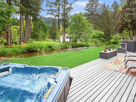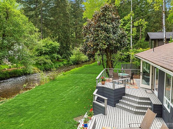 Stunning & truly unique, this Sycamore gem offers privacy, natural beauty & modern comfort—plus no HOA & rare Issaquah Creek frontage! Minutes from downtown, the home features an open layout with a dramatic wall of windows, gourmet kitchen w/high-end appliances, two ovens & pantry. Enjoy the spacious wrap around deck, hot tub, fenced garden, & gas firepit. Additional highlights: central A/C, covered front porch, basketball hoop, oversized garage w/pull-through access, & tons of parking. Fully permitted ADU currently operates as a popular Airbnb—ideal for income or guests. A one-of-a-kind retreat in a prime Issaquah location!