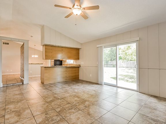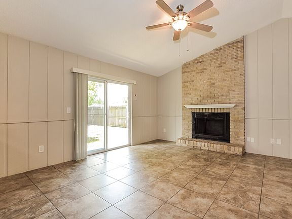 You'll adore this charming Deltona rental home with three bedrooms and two baths in 1,556 square feet. Step into the open-plan space that holds the huge family room and the dining room, whose doors open to a spacious sun room. The brick-walled kitchen separates the dining room from the living room, and you'll find it easy to create meals and clean up thanks to the double sink, generous counter space, and stainless steel appliances. The living room delights with its warming fireplace, cooling ceiling fan, and doors to the backyard. The main bedroom also has doors to the backyard as well as a clutter-banishing walk-in closet and an en-suite bathroom. Come see this rental home now.