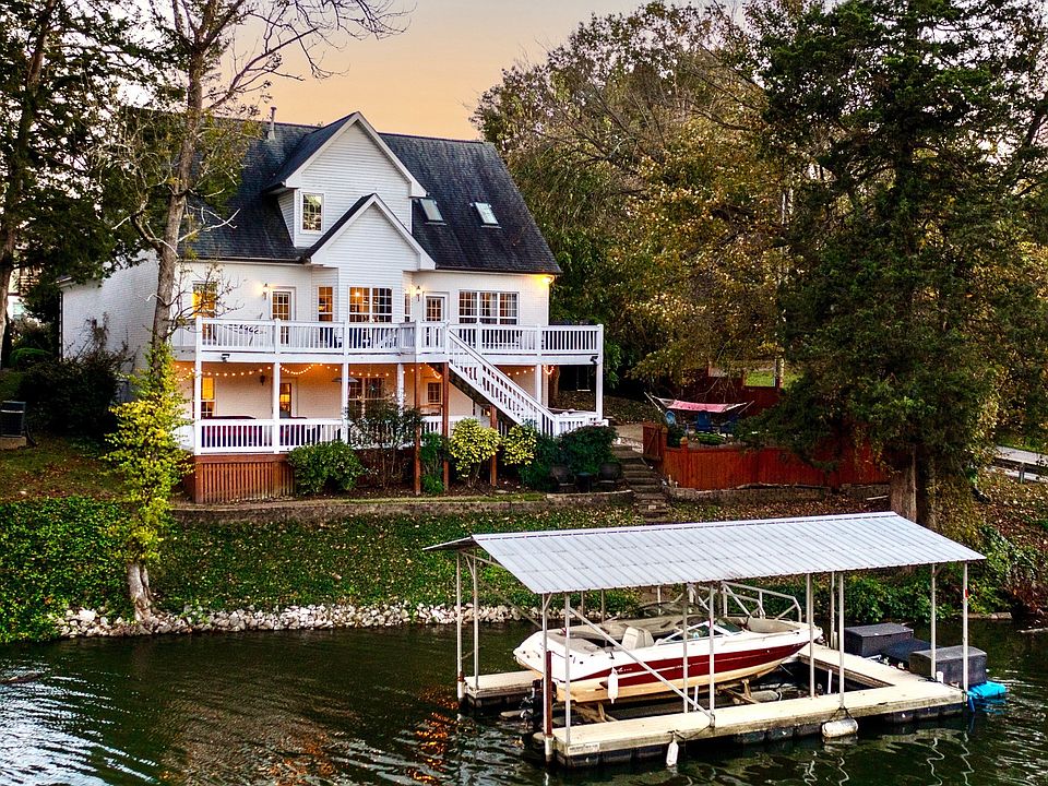 The home features a spacious eat-in kitchen, formal dining room, dedicated office, fireplace adorned living area, huge bonus space and conveniently located 1st floor primary suite. The finished basement presents a unique income-generating short-term rental opportunity w/ private entrance to the lower level's 2 bedrooms + office. In addition to its versatile layout, this property has a proven track record as a successful short-term rental, generating significant income when operated as an airbnb. Historically, it has been booked nearly every weekend, and, when run full time, produced approximately $100K annually - enough to offset a substantial portion of a mortgage payment. For buyers interested in an income-producing opportunity, the potential is both demonstrated and compelling. Alternatively, the home could easily serve as a spacious office with three private offices, or as an ADU. Outside, expansive views of the Cumberland River, covered dock w/boat lift and highly sought after location on Sandy Cove's idyllic cul-de-sac is lake life at its finest.