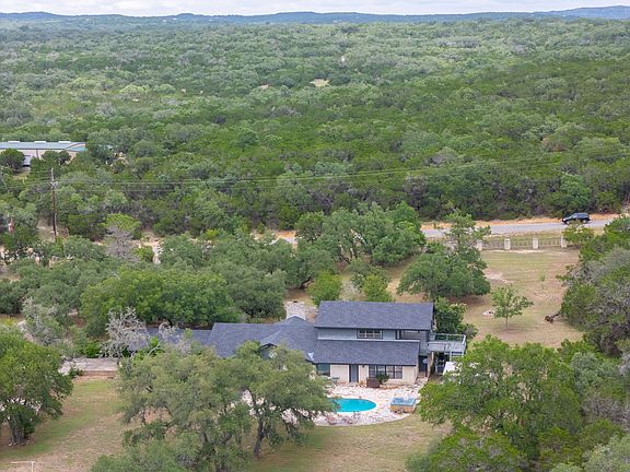 Escape to your own private sanctuary in the heart of the Texas Hill Country! Nestled on 10 gated acres of beautiful land, this exceptional property offers both tranquility and luxury. Located just outside the charming town of Wimberley, TX, renowned for its scenic beauty and artistic community, this estate features a spacious main house and a separate guest house, making it ideal for family, guests, or rental potential. The beautifully designed main house offers a flowing floor plan with 3 bedrooms and 3 bathrooms. With high ceilings and great bones, this home is ready for a new owner to bring a fresh imagination and make it their own. The home is perfect for entertaining or simply relaxing in style. Large windows throughout provide stunning views of the surrounding hill country landscape. The charming guest house offers privacy and comfort for visitors, featuring 3 bedrooms, a cozy living area, and a kitchen. Perfect for hosting family and friends or providing a serene space for long-term guests. Step outside and immerse yourself in the natural beauty of this secluded estate. The expansive property is gated and provides ample space for outdoor activities, hiking, or simply enjoying the peaceful surroundings. Take a dip in the sparkling pool, relax on the spacious patio, or enjoy a cool drink while taking in the breathtaking views. This property has it all!