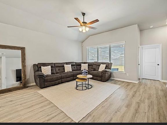 Great 4 bedroom, 2 bathroom home in great new neighborhood. House has many great features and upgrades. Beautiful kitchen with granite counters, center island with bar seating and stainless appliances. Large primary bedroom with recessed lighting feature. Fabulous primary bath with huge tiled walk-in shower and large walk-in closet. Home comes with water softener, Vivint security system, and lawn irrigation system. Private fenced in backyard with extended, covered patio area. Built by Carothers Executive Homes. This home is priced to sell. Schedule a tour today!