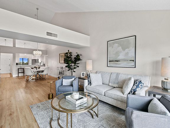 Discover this stunning Bluffs Marina Penthouse, where elegance meets comfort. This beautifully updated residence features soaring vaulted ceilings in the main living area and both bedrooms, creating a spacious ambiance that outshines lower-floor units. The gourmet kitchen boasts quartz countertops, a breakfast bar, and stainless steel appliances, while luxury vinyl flooring ensures easy maintenance. A large bonus room adds versatile storage space or office. Enjoy four pool areas with a covered pavilion and stunning marina & lake views, perfect for relaxation. Stay active playing tennis and pickleball day or night. The lush, professionally maintained landscaping and winding sidewalks offer ideal settings for leisurely walks or safe biking, complemented by refreshing tropical breezes.