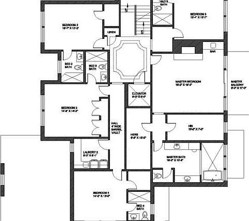 - Room types: Bedroom 5, Bedroom 6, Bedroom 7, Library, Recreation Room, Exercise Room, Media Room, Other Room
