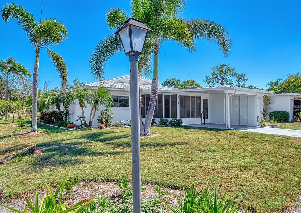 Welcome to your Florida Oasis! This Newly Remodeled, Immaculate, Rarely Available Villa has an Outstanding Location just 3/4 of a mile away from the pristine shores of Nokomis Beach, just moments from the soft sands and gentle waves of the Gulf of Mexico. You will LOVE the Beautiful New Kitchen and Bathrooms in this Beach Cottage Style move-in ready home. The open, airy, and bright interior welcomes you with a sense of tranquility. Experience the beauty of Florida's outdoor living with multiple enticing spaces...A back patio, sunroom, and screened-in front porch provide ideal settings to bask in the Florida sunshine, enjoy a morning coffee, or unwind with a good book. This well maintained 55+ community is the perfect coastal retreat for relaxation and recreation offering an array of amenities including a large pool, clubhouse with a library and community gatherings (potlucks, card nights), pickleball court, shuffleboard, kayak racks and launch and the potential opportunity for a boat slip as well. Additional Features in this update home include- New kitchen & appliances 2025, New AC 2025, New water heater 2025, New carport and shed 2023, updated plumbing & electric, electric car charging port, irrigation system to keep the landscaping lush and vibrant, Newer solar shade window coverings & impact-resistant PGT level 5 windows offer hurricane protection. This Villa is one of a kind, offering a blend of coastal living, modern amenities, thoughtful upgrades and an amazing location. With all these features, it's the perfect place to call home for those looking to enjoy the best of Florida's lifestyle!