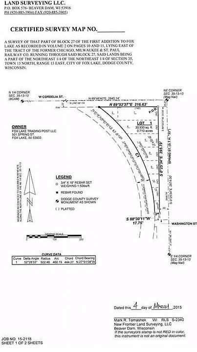 This is a vacant land. This home is located at 501 Spring St, Fox Lake, WI 53933.