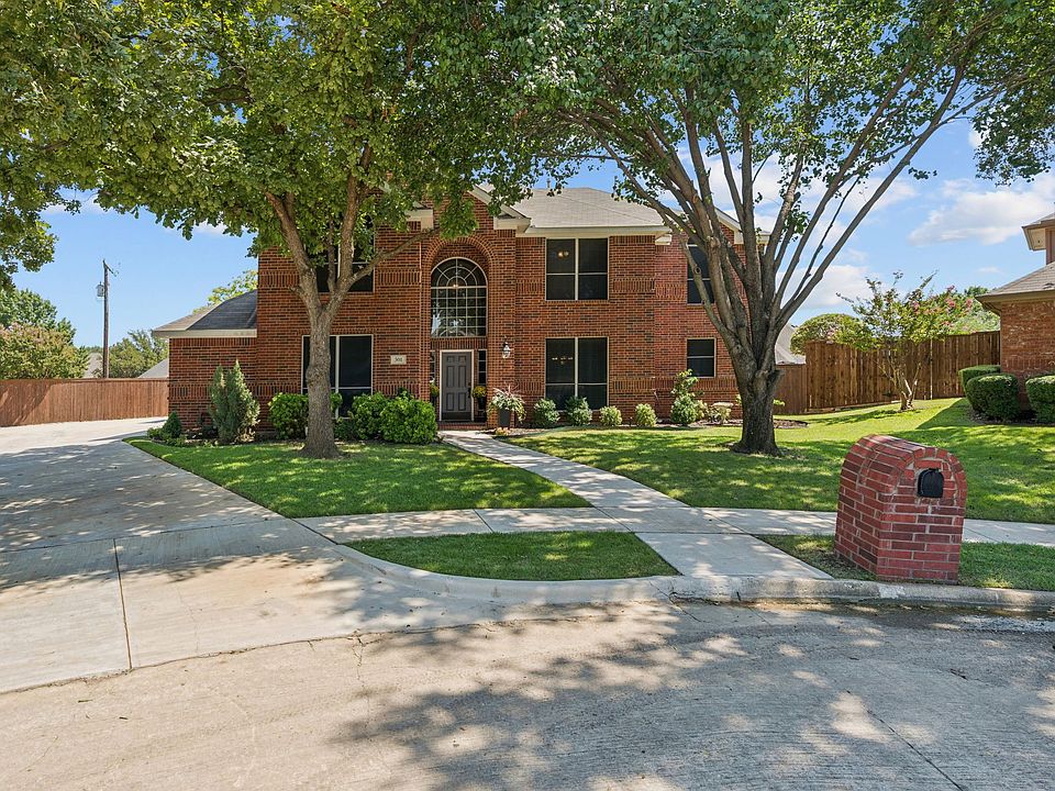 Beautiful one-owner home in Flower Mound! Nestled on a quiet cul-de-sac, this well maintained home features a large backyard and an incredible 720 sq. ft. of outdoor living space, including a 550 sq. ft. covered patio with a mister system, built-in grill, cooler, great storage, and generous counter workspace—perfect for entertaining or relaxing after a long day. Step inside to a welcoming entryway with a graceful staircase. The living room has custom plantation shutters and a beautiful fireplace. The spacious kitchen offers abundant cabinet storage, ample workspace, an island with electric cooktop, and a large walk-in pantry. The primary suite includes a lovely sitting area and ensuite bath with a jetted tub. With 4 bedrooms, 2.5 baths, home office and a prime location near shopping, dining, and access to major highways, this home truly offers comfort, quality, and convenience!