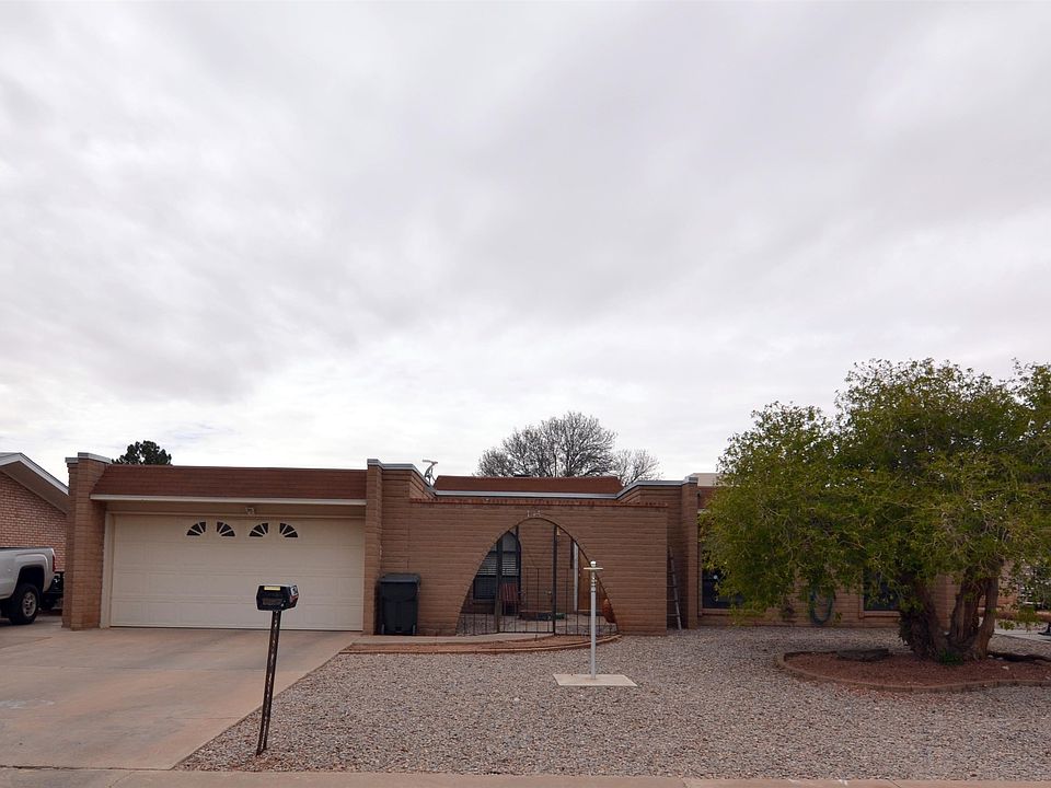 Such a lovely home with so many features. There is a courtyard in front and a covered patio in the back giving one the option to relax and chill on either side of the house. Home has a distinct southwest feel and includes arched doorways, a beautiful stone fireplace, and beamed ceilings. This is a well established and desirable area. Backyard has a fenced area currently being used as a playground for kids...or can be used as a dog run.