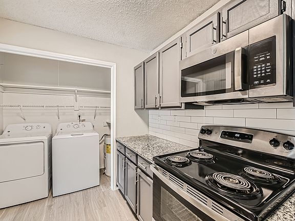 - Exterior features: 24-Hour Emergency Maintenance, BBQ/Picnic Area, Balcony, Bath Vanity Lighting, Black Appliances, Brushed Nickel Hardware, Business Center, Classic Kitchen Finishes, Complimentary Coffee Bar, Convenient Location, Courtyard, Digital Thermostats, Frameless Vanity Mirrors, French Doors, Granite Countertops, Hospitality Bar, Mature Landscaping, Multisport Court, Online Rent Payment, Online Services, Onsite Leasing & Maintenance, Outdoor Conversational Seating, Outdoor Gaming Area, Overhead Lighting, Package Receiving, Pet Friendly, Pet Park, Plank Flooring 2 Bed, Recently Renovated Int 1x1, Recently Renovated Int 2x2, Recently Renovated Int TH, Renovated, Renovated Kitchen Finishes, Sundeck, WDST, Wi-Fi in Common Areas