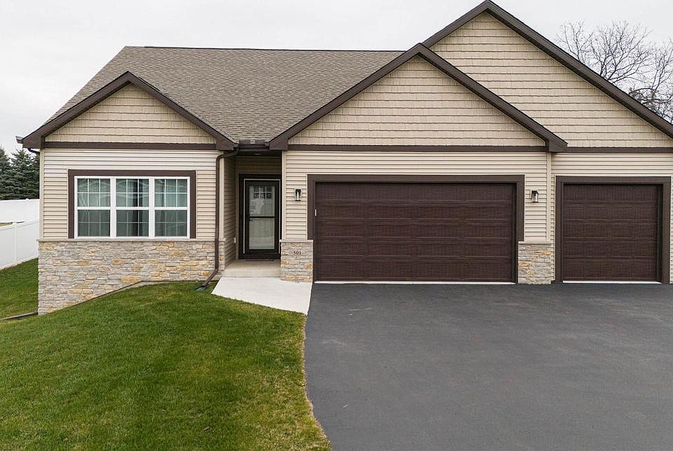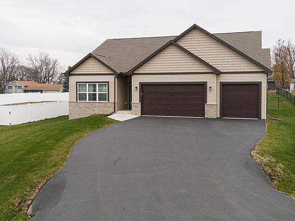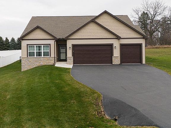 Built in 2023, this impressive split-bedroom ranch offers over 1,800 sq ft of open living space and checks all the boxes. Enjoy a stunning kitchen with quartz countertops and stainless steel appliances overlooking open living room with natural stone fireplace & reclaimed wood mantel. Enjoy Luxury vinyl plank flooring throughout. The gorgeous en suite features a walk-in shower with glass door, double vanity, and tray ceiling. Main floor laundry with upper cabinets adds convenience. Situated on a large fenced yard in Orfordville, you will appreciate small-city charm paired with the highly rated Parkview School District and an easy commute to Madison, Beloit, and Janesville.