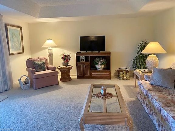 Located in Naples, The Glades Golf Country Club in Naples offers 36-holes where you have the choice of riding or walking the golf course. This second floor end unit is beautifully decorated with Queen bed in master bedroom, Twin beds in guest bedroom and carpet and tile throughout. Close to shopping (Publix, Walgreens, CVS), dining and only 10 minutes to Naples pristine beaches. Clubhouse offers dining, bowling, Bocce, Shuffleboard, tennis, water aerobics, water walking an yoga. Information contained herein deemed reliable but not guaranteed