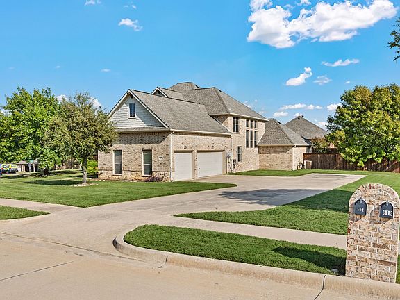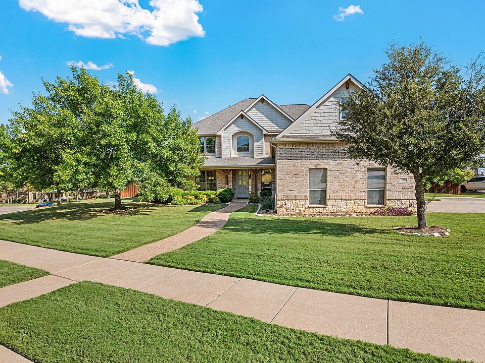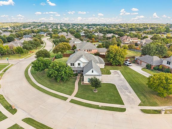 Welcome to this stunning two-story home situated on a sprawling corner lot in one of Keller’s most sought-after neighborhoods! From the moment you arrive, the beautiful brick exterior, manicured lawn, and mature trees create an inviting first impression. Step inside to discover an open and airy floor plan designed for both everyday living and entertaining. The main level features elegant wood flooring, rich crown molding, and a flowing layout that connects the formal dining room, spacious living area, and large kitchen with breakfast bar seating. The kitchen offers abundant cabinetry, double ovens, stainless-steel appliances, and a central island, while the adjoining breakfast nook fills with natural light from walls of windows overlooking the backyard oasis. The primary suite is a private retreat with a sitting area and direct patio access, while the ensuite bath includes dual vanities, a soaking tub, and a separate shower. A large bonus room on the first floor provides versatile space for storage, a home gym, or hobby room. Upstairs, you’ll find a generous game room and a huge media room pre-wired for sound and complete with a wet bar—ideal for movie nights or entertaining guests! A built-in office nook between floors offers the perfect quiet space to work from home. Step outside to your personal paradise: a sparkling pool and spa surrounded by tropical landscaping, a spacious yard, and a gorgeous pergola-covered terrace perfect for shaded dining and outdoor relaxation. Located near top-rated Keller ISD schools, shopping, and dining, this home offers the perfect combination of comfort, space, and convenience—all in a peaceful neighborhood setting you’ll love coming home to!