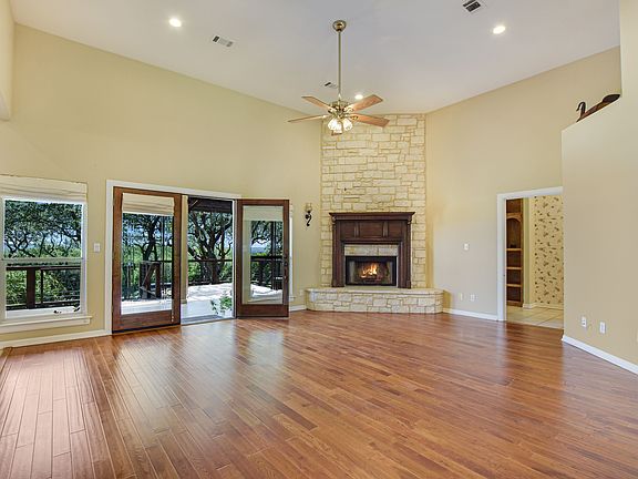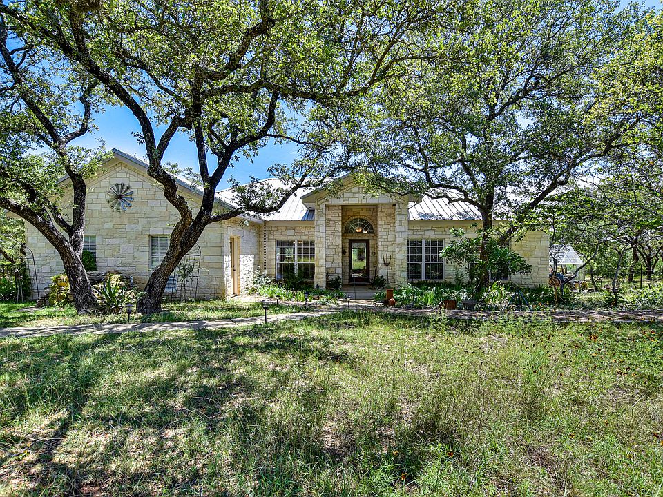 Long distance Hill Country views from the spacious back deck. Limestone custom home with hardwood and tile floors, granite counter tops, custom cabinets & open concept living for entertaining. High ceilings & a beautiful stone fireplace. Master suite has a garden tub / separate shower and generous closet. The 5 acres has a koi pond, enclosed garden, perimeter fencing, great trees, well & septic / 2 sheds. The garage has central heat and air.