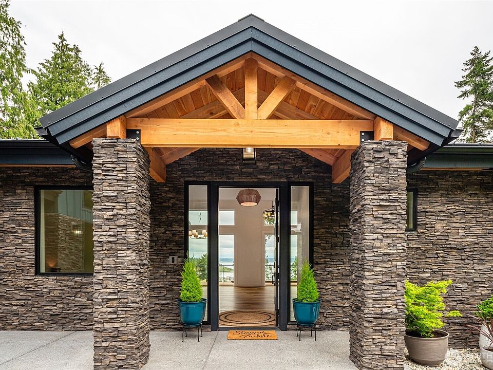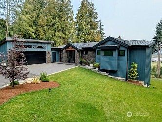 View and Acreage!! *GPS is incorrect*(Please arrive and leave via Patricia Ann to Vesper) NW Contemporary 3000+sq ft.,4 bedroom home has it all. Location close in to amenities, views, room for potential ADU and/or shop, all located on acreage. Private setting to enjoy the installed outdoor campfire while taking in the island vibes and views. This unique style home has much to offer. Gourmet style kitchen to include a coffee/wine bar area w/a wine cooler. Granite waterfall style center island, granite backsplash, a butler style pantry, generous utility room with built in cabinetry for coat storage, washer/dryer utility area on BOTH floors. Primary bedroom has an amazing view + gorgeous bathroom!! STORAGE+3 walk-in closets. HOA $1365 per yr