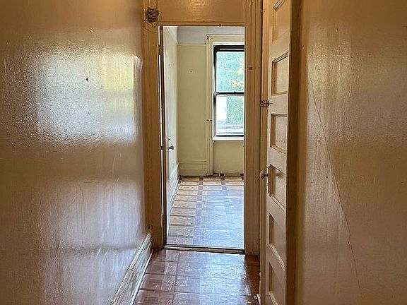 Passing these rooms leads you to the living room with windows facing east onto the Hamilton and Amsterdam. This room gets amazing natural sunlight. Adjacent to this room is the dining room, which was treated as the master bedroom by the owner and it too faces east onto the same direction. There is a built-out closet in this room and you will notice the door that separated it from the living room. There were once french doors in place and could be returned to create an amazing pass-through room. Across from the LR/DR is another bedroom with a natural closet and also facing the rear. It's the largest of the three bedrooms.