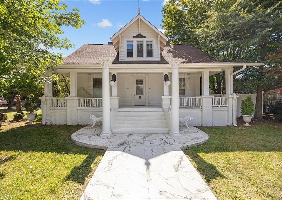 Rare Historic Uptown Gem! Explore this ambitiously updated home in coveted Park Place District, near Childress Vineyard. Corner lot, tucked away and steps from energetic Downtown Uptown with bustling arts, family dining, hip eateries, boutiques, breweries, concerts, and BBQ Festival. Commercially zoned, this property offers unending options for homeowners/investors. The exterior impresses with a grand marble walkway, elegant columns, Tiffany lighting, and stained glass entry. Greeting you inside are tall ceilings, wood floors, gilded era wall paper, and energy efficient block windows for cozy sophistication. The modernized kitchen has updated cabinetry, with elegant, modern porcelain countertops and marble backsplash. Spacious wood deck, New- roof, ML HVAC, sump pump, electrical, plumbing, appliances (range, microwave, fridge), W/D, interior/exterior paint, fencing, and landscaping. This special home combines historic beauty with modern living. Valuable Home Warranty Included!