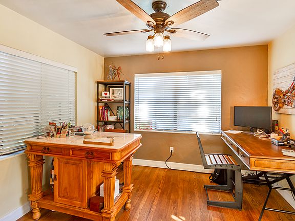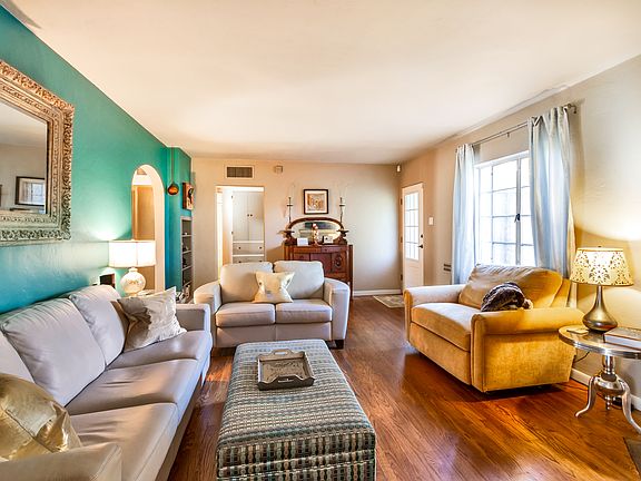 This very rare hedged and gated stone cottage (2/1 1272 sqft) and 576 sqft guesthouse (1/1) emanates beauty, tranquility and romance. The effect comes in part from the Coconino Sandstone walls set against lush, irrigated gardens filled with trees, shrubs and flowering vines. Inside, there are White Oak floors throughout, a fireplace retrofit with gas in 2018, a tiled bath, and a formal dining room with French doors that lead to the flagstone patios, brand new 12' by 14' gazebo and the gardens. Off of the living room is a large den/potential bedroom with a separate side door. New addition in 2021 adding 260sf to the main house, primary bedroom with ensuite. Permits and historical preservation department approvals on file.