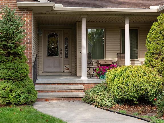 Built in 2003, this custom-built ranch features 2,200 square feet on the main level and has a durable exterior of brick and metal siding for low-maintenance practicality. The beautiful, covered porch offers a warm welcome. As you enter through the foyer, you will see the living room offers the sophistication of coffered ceilings and a gas fireplace. This home is a rare find in that it has four bedrooms all on the main level. The primary bedroom is spacious and offers a private bathroom with a jacuzzi tub, shower and a walk-in closet. The other bedrooms are on the other side of the house for privacy and share a full guest bathroom. With its circular flow of the living room, dining and kitchen, entertaining is easy here! There is an abundance of storage space in this house. The lower level has a finished family room but otherwise is a blank slate with 10' ceilings offering much opportunity to finish as desired by the new homeowner. This home sits on a corner lot, has a sprinkler system for a lush lawn and has a fenced in yard.