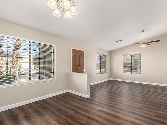Freshly painted inside and out, this single-level home offers 3 bedrooms, 2 bathrooms, and an open floor plan perfect for modern living. Enjoy brand-new carpet and luxury vinyl plank flooring throughout, a spacious family room with vaulted ceilings and a cozy fireplace, and a bright kitchen with ample counter space and a breakfast bar. The neutral color palette and natural light create a warm, inviting atmosphere.
