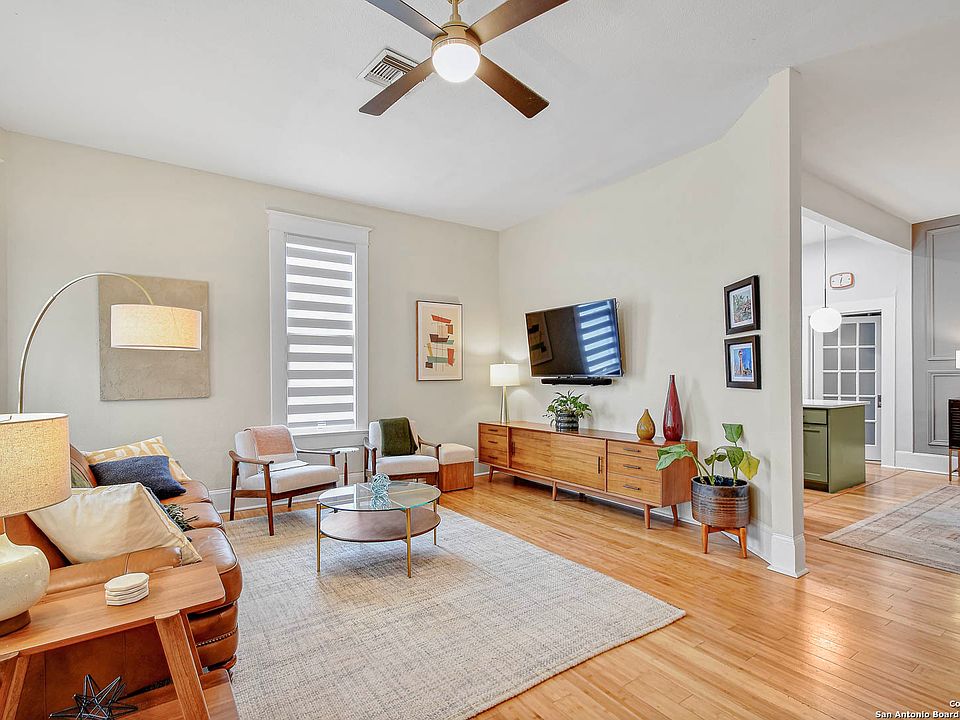 Fabulous home in sought-after Alta Vista! Step inside this charming 1920s residence and experience the character and craftsmanship of a bygone era beautifully preserved and thoughtfully updated. Original hardwood floors, tall ceilings, original transom windows, and vintage glass doorknobs highlight the home's timeless appeal, while abundant natural light fills each room with warmth and character. Tastefully remodeled with today's modern amenities, the home strikes the perfect balance between historic charm and contemporary comfort. The recently renovated kitchen features elegant quartz countertops and brand-new appliances, including a stove, microwave, dishwasher, and disposal. Both the kitchen and bathroom boast all-new Moen fixtures and faucets, carefully selected to complement the home's classic style. The main bathroom has been completely remodeled with a timeless design and showcases a charming clawfoot bathtub that adds to the home's vintage character. Outside, the home is equally inviting with a metal roof and a wonderful covered front porch-perfect for morning coffee or evening relaxation. Situated on a private corner lot, the property offers double-gate side access to the backyard for added convenience and flexibility. The quaint backyard includes a woodshed, ideal for extra storage. A true gem blending vintage elegance with modern comfort-don't miss the opportunity to make this Alta Vista beauty yours.
