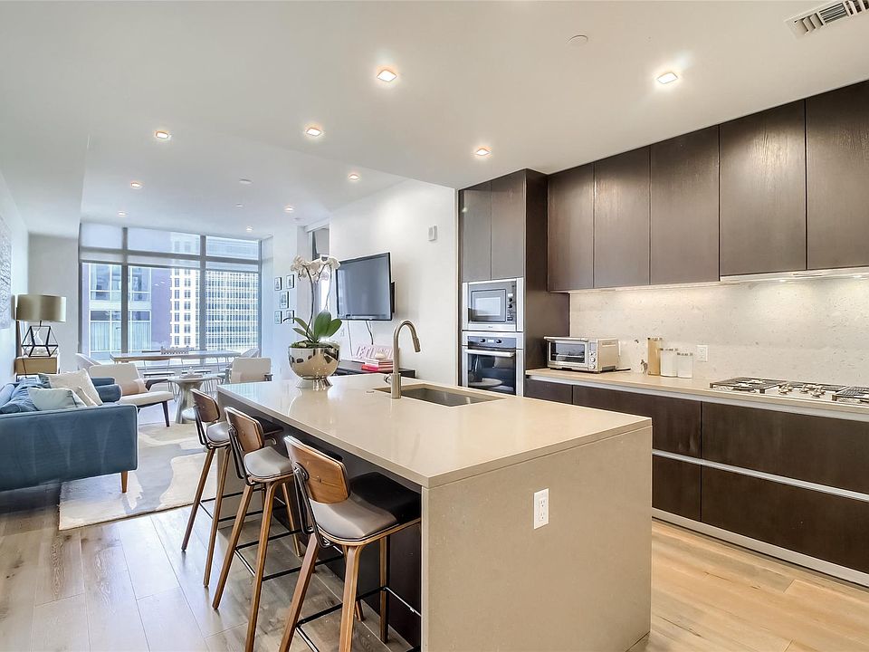 Welcome to DT Austin's finest luxury condos, Fifth & West! Unit 1002 comes with its own parking spot on level B4 and a storage unit! 1BR/1BA residence includes a well appointed storage unit measuring 8'x7.5'x8' . This unit features expansive windows and boasts a generously sized balcony. The kitchen is flooded in natural light and an oversized island paired with ample cabinetry makes for a splendid and functional aesthetic. Top end finishes include window shades, hard wood floors, Miele appliances and Savant home automation. World class amenities such as 24-hr concierge, yoga & fitness studio, guest suites, pool, pet park, and conference rooms are all part of living at the coveted Fifth & West Condominiums. Reach out today!