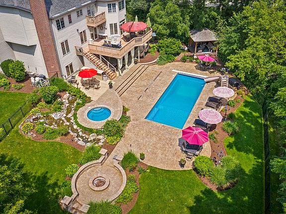 Custom home on 1.4+ acres in town with city water/sewer! Private lot with no neighbors behind you boasts a resort style saltwater pool, towering trees and amazing landscape/hardscape! 6 Bedrooms, 6 baths, approx. 6000 square feet of luxurious, comfortable living awaits you! Welcoming foyer is flanked by elegant dining room and living room/den. A custom bar is adjacent to the family room and open great room concept that is perfect for both day to day living and gracious entertaining at every holiday. The kitchen is spacious with a center island and breakfast bar with tons of seating. The casual dining space overlooks the pool and yard! A full bath and laundry, mud room round out the main floor level. Upstairs via dual staircases are 5 bedrooms all on the 2nd floor! The relaxing master suite has a separate sitting area, large walk-in closet and spa like bath with amazing walk thru shower! Bedroom two has its own NEW private bath, walk in closet and sitting area. Bedroom three has a walk in closet and private bath. Bedrooms four and five share a Jack and Jill bath. The walk-out lower level is finished nicely with a game room, lounge area, recreation room, additional bedroom/bonus room, gym and 6th full bath! Inground pool, hot tub and relaxing cabana area with suspended walkway over water make you feel like you are on vacation every day! Huge patio and lots of privacy, 1/2 court basketball area for kids and so much more. Amazing location only minutes to downtown St. Charles! Additional highlights include brand new upstairs furnace and AC, waterfall feature, large deck, patios, mature landscaping. Brick and Hardie Board Siding are virtually maintenance free! This is it!