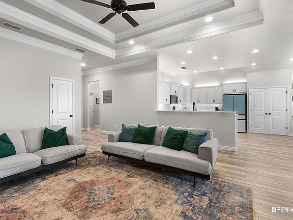 Modern comfortWarm inviting feelOpen layoutCrisp all-white kitchen