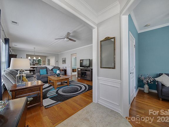 Location! Location! Location! Come see this very desirable Pine Spring floorplan w/ a sunroom located at the front of amenity-rich Sun City Carolina Lakes. Convenient to front entrance & Harris Teeter shopping center. This 2 bed/2 bath home w/ a den is ideal for cozy living. Features include engineered hardwood, tile and brand-new carpet in the bedrooms, fresh paint throughout, crown molding, wainscoting, ceiling fans, & updated light fixtures. The den w/closet can be an office or a 2nd living area! The bright kitchen features white cabinets, SS appliances, Corian counters, tile backsplash, & a lazy susan cabinet! Relax in the sunroom or on the rear patio, where you can enjoy the peace & quiet with your morning coffee. Primary suite has lots of natural light & an ensuite bathroom w/white cabinets, dual sinks, shower, & a walk-in closet. Fantastic location close to shopping, restaurants, medical centers, & more! Don't miss this fabulous opportunity to join the active-adult lifestyle!