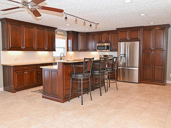 Beautiful all rick ranch sitting on 1.028 acres. Cherry cabinets with granite countertops and stainless steel appliances and beautiful island make this a kitchen you will fall in love with instantly. Wood burning fireplace in the kitchen will help heat the house during the winter months. Newer furnace and air conditioner. The basement walls have been treated by Ever Dry with a lifetime guarantee. The pole barn is perfect for extra storage or for a workshop. This house is definitely a must see!!