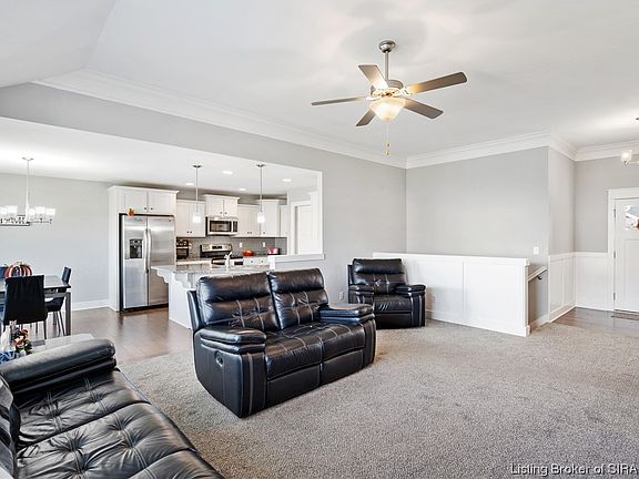 Home for the Holidays! Motivated Seller offering $$$$ towards 2-1 Rate Buydown!! This lovely 5-year old home in Knob Hill is just 20 minutes from downtown New Albany! This 4 bedroom "Finch" floor plan features a covered front porch, vaulted great room, open floor plan, and main floor laundry room. Beautiful eat-in kitchen overlooking the great room has granite countertops. First floor primary suite offers large walk-in closet and en-suite bathroom with double vanity and large walk-in tiled shower. Full, finished daylight basement features huge family room, 4th bedroom, full bath, a bonus room (could be an office) and a large storage area. Attached 2 car garage opens to the mud/laundry room. Sellers love the neighborhood and the school district but their life changes are your buyer's gain! Seller says bring us an offer and be in your new home for the holidays!