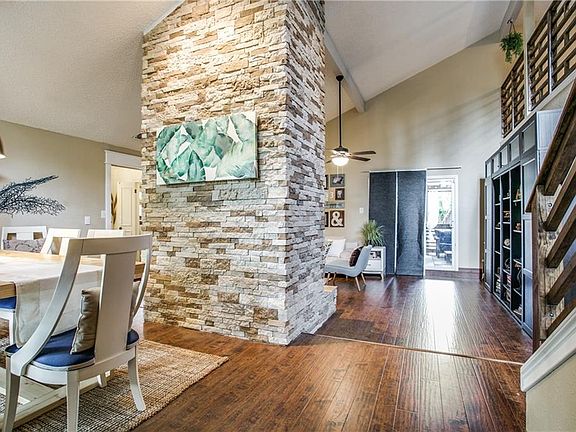 Head to toe renovations! Walk in to a bright and open concept, separated by the custom fireplace as a stunning centerpiece of the entire home. Follow the new hardwood floors into the remodeled kitchen with unique cabinetry, granite countertops, stainless steel appliances and fantastic built-ins throughout the breakfast room! Master suite has had many on-trend updates with a sliding barn door, fantastic bathroom with oversized tub-shower combination. Find two bedrooms upstairs with a connecting, updated bathroom. One room even has a built in desk! Make memories in the covered porch or playing in the huge backyard. Extra storage building included! This gem won't last long. Don't miss the 3D virtual tour!