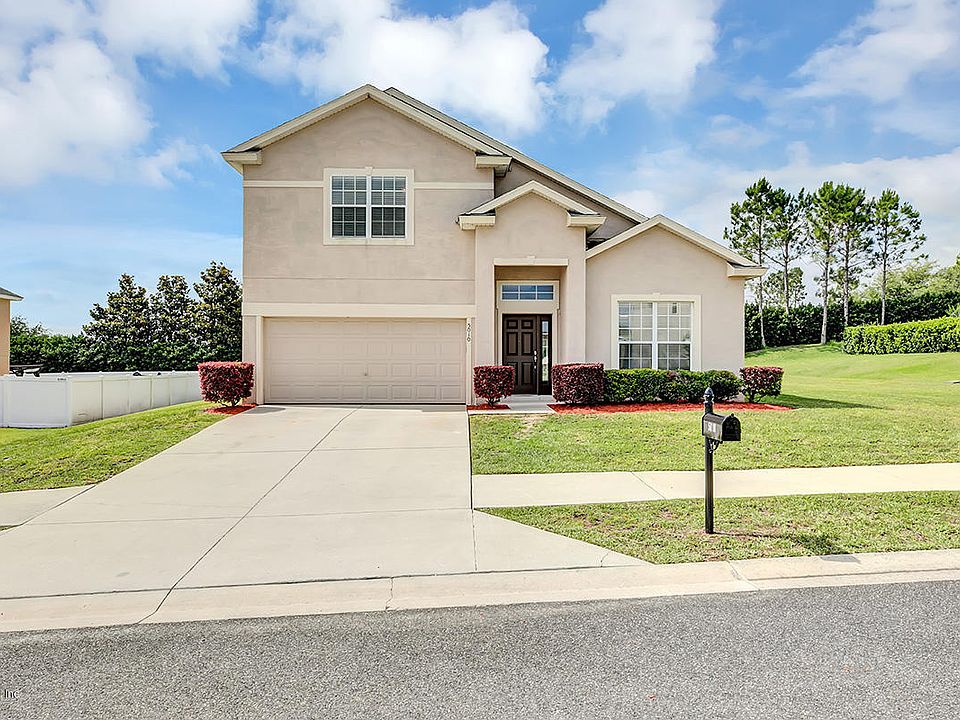 Room for the whole family to roam! FIVE bedroom, three and a half bath home situated on an over sized lot (with no neighbors behind you) in desirable Heathbrook Meadows. Inside of the home boasts a spacious floor plan with TWO master suites - one upstairs and one downstairs (perfect for in-laws or guests), formal dining room, formal living room, upstairs loft, and more. Master suite has a HUGE walk in closet, BIG master bath with a soaking tub, separate enclosed shower, & his and her vanities. Nicely sized guest bedrooms. Inside laundry room & attached 2 car garage. Sliding doors lead from the family room to an open patio. Great family friendly & gated community with a pool in a prime location just off of SR 200 for easy access to shopping, malls, hospitals, parks, schools, & I-75.