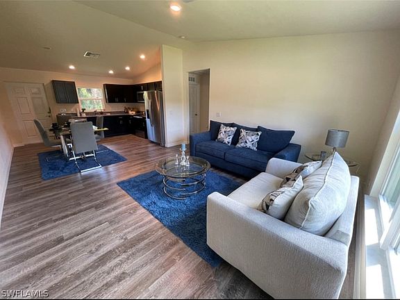 Why wait to build?? This 2022 BRAND NEW Construction is MOVE IN READY!! Take a look at this BEAUTIFUL 3/2 home with a single car garage sitting on an oversized .32 acre lot. The home features granite counter tops, stainless steel appliances, vinyl plank flooring throughout, and impact resistant windows. All furniture including 3 beds, 2 couches, end tables, and dining room table & chairs are included in this sale. The property is located on a cul-de-sac for added privacy. Close to schools and shopping! No HOA's or Restrictions! Own your piece of Florida Paradise today!