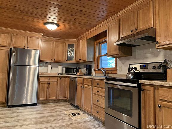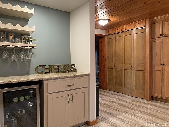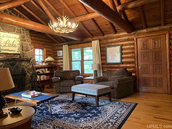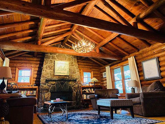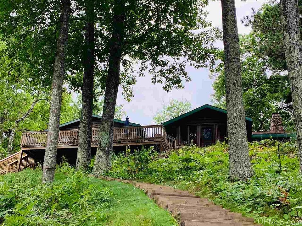 Panoramic views on the beautiful west Lake! Sandy bottom, deck, gradual gorgeous brick and wood stair case to the 400+ ft of water frontage. Many updates have been done! Enjoy cooler evenings by the stone fireplace with built-ins & hardwood floors. 3 seasons room with charming windows on all sides. Large expansive deck and private entry off of large master en suite! Updated large bath, flooring and immaculately kept! Must see!