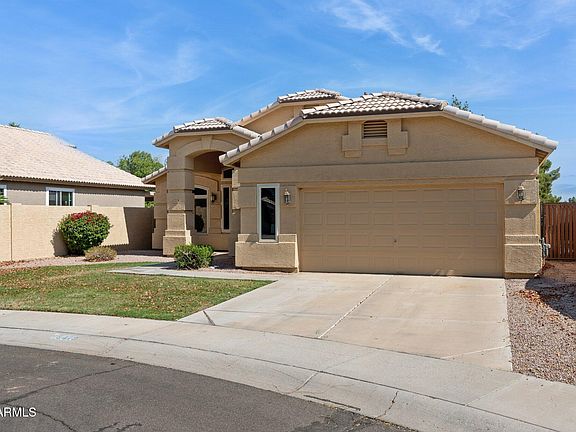 Tucked nicely back on an oversized, cul-de-sac lot, this 3bed (+ den / office), 2bath, single-level, ORIGINAL OWNER home is nearly 2,200 sq ft of living space & is move in ready! Vaulted ceilings & open kitchen / family room are perfect for entertaining & this home is light & bright throughout! Recent upgrades including dual-pane windows throughout (2019), new roof (2020), pool & stone deck remodel (2020), updated primary bath (2020), and new carpet (just completed) throughout. Step out back to sparkling PebbleTec pool, mature landscaping, & spacious, grassy back yard. Low HOA. Close to multiple parks & so much shopping, dining, entertainment & top-rated schools along with easy, central access to loop 101, loop 202 & I-10. Move in as is, or complete more updates to make it your own!