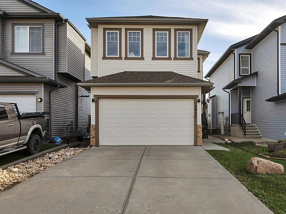 Step into small town charm with all the space and comfort you have been searching for. This gorgeous two story on 53rd Avenue in Calmar offers 1,713 sq. ft. of thoughtfully designed living space. The main floor is open and inviting, filled with natural light and centered around a well-equipped kitchen that makes both cooking and entertaining a joy. A spacious living and dining area creates the perfect place to gather, while a convenient half bathroom adds extra functionality for busy family life and guests. Upstairs you will find three generously sized bedrooms, including a private primary suite with a full ensuite bathroom. Another full bathroom on this level provides comfort and ease for the whole family. The double attached garage keeps life organized, and the location is second to none. Just a five minute walk brings you to both the elementary and high school, while still being only minutes from Leduc, the airport, and Edmonton’s south side. This home is more than a place to live.
