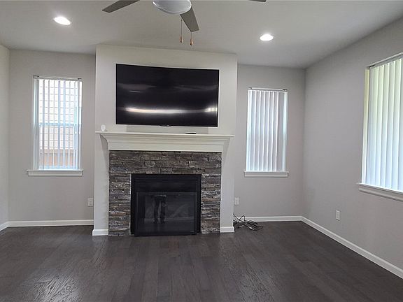 Open floor plan, stylish laminate flooring, granite counters throughout, kitchen with gas stove and large island with bar seating, spacious living room with a gas fireplace. *Upper Floor