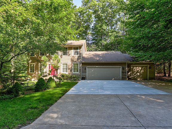 WOW! If a location with water access and a home with lots of space is what you are looking for, you just found it! Located in Norton Shores and the Crooked Tree Association, this 5-bedroom, 3.5-bathroom home is a great find. Sitting on a private drive lined with tall trees that give it a very private feeling this home is a must see. The home has a lot of space for the family and entertaining. Stepping in the front door you find a nice welcoming foyer with a room on either side. These 2 rooms could be so many things: a home office, den, or a sitting room to hang out with guests. Heading down the short hallway you will find the living room with a gas log fireplace and tall windows with a great view of backyard, hills and trees making it feel like a sanctuary in the trees. The living