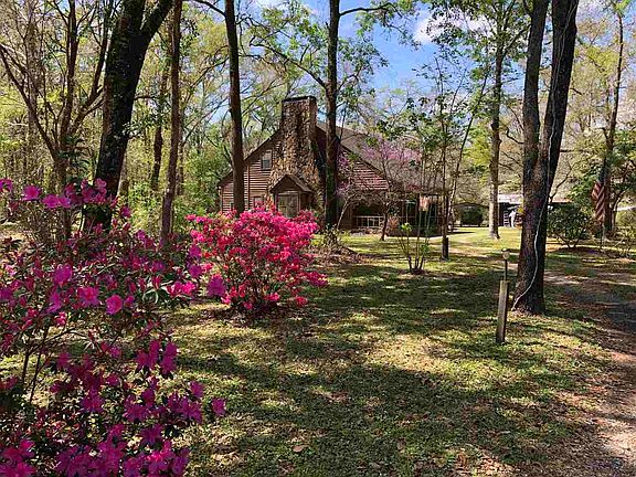 This spacious farmhouse style home with Western cedar siding and trimmed with natural stone is located in a beautiful country setting on 4.41 acres approximately seven miles north of Perry. The yards are adorned with gorgeous live oak trees, pines, cedars, dogwoods, redbud, azaleas, fruit-bearing citrus trees and blueberry bushes. The home has a massive stone chimney that serves two large stone fireplaces. A large covered front porch with a wooden swing extends the length of the home and provides a comfortable space for enjoying the outdoors. Double windows in the kitchen allows a beautiful view of the backyard and heavily wooded back acreage. The two wood-burning fireplaces in the living and family room areas add to the warmth and coziness of this home in true farmhouse style. The master bedroom, second and third bedrooms and two baths are located on the second floor, while the guest bedroom and bath are on the first floor. The large kitchen has an upright freezer, plenty of cabinets, and granite countertops with lots of workspace to make cooking, canning and storing a breeze. The property also includes a large workshop with electricity, a shelter for your tractor or mower, and a pump house with a new pump and water treatment system. If you enjoy nature and dream of living in the country where you are sure to spot deers and turkeys from time to time, along with watching all the birds and squirrels that frequent the yard, this might just be the perfect place for you to call home! Make an appointment for a personal viewing soon!