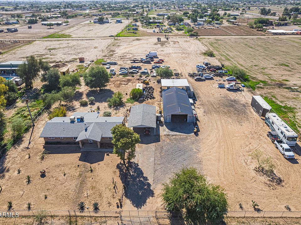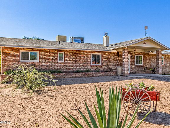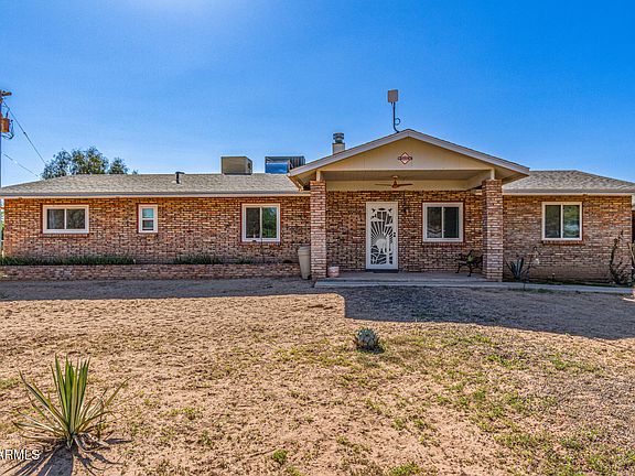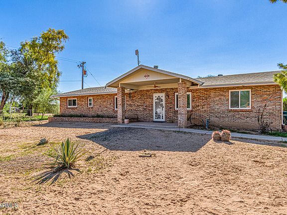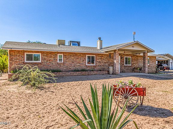Fantastic opportunity to own this delightful 4-bedroom home on a sprawling 3.59-acre lot! Discover a cozy interior showcasing a serene living/dining room with a soothing palette, blinds, and Saltillo tile flooring for a rustic atmosphere. Gather loved ones in the family room, perfect for intimate moments. The well-appointed kitchen comes with stone-tile counters, abundant wood cabinetry, a striking stone backsplash, and a practical pantry. The primary bedroom includes a private bathroom for added comfort. The expansive outdoor space is the true highlight, boasting a covered patio, a detached carport with storage and a workshop, a large hangar, and tons of space to craft your dream oasis or horse facilities. Don't miss out on your chance to own this vast property!