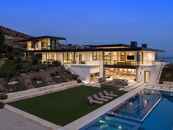 Perched high above the coastline with commanding, unobstructed views of Carbon Beach and the iconic Malibu Pier, this newly constructed estate is a true architectural triumph. Set on over 22 acres within the exclusive Carbon Beach Terrace Estates, the property is accessed through dual gates with 24/7 security and introduced by a dramatic glass entryway featuring an oversized pivot door and soaring ceilings. Designed with impeccable taste, the home is filled with natural light and finished with sophisticated furnishings and high-end materials. Every element has been thoughtfully curated from the statement-making glass staircase to the bespoke detailing throughout. The open-plan living spaces seamlessly blend modern comfort with refined luxury, creating a warm yet elevated atmosphere. The primary suite offers a peaceful retreat, complemented by a gourmet chef's kitchen, state-of-the-art cinema, private poker room, and luxury wellness amenities including a fitness center, indoor spa, steam room/sauna, hair salon, and private massage area. Outside, an infinity-edge pool with jacuzzi, expansive terraces with fire pits, and a private sandy beach provide the perfect setting for both relaxation and entertaining. Guest accommodations include private quarters with a stunning rooftop deck that rivals a five-star resort. Located just minutes from Nobu, Soho House, and Malibu's most celebrated destinations, this exceptional property offers an unrivaled coastal lifestyle defined by privacy, design, and world-class views.