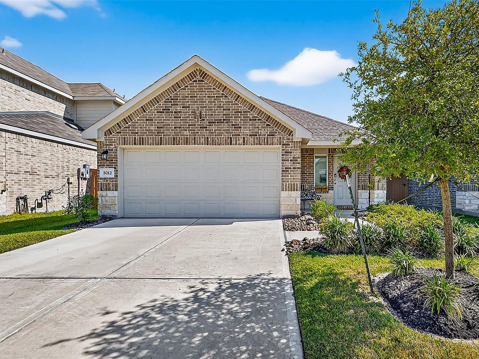 The primary suite boasts a luxurious bath with a separate soaking tub and walk-in shower. Enjoy the durability and style of solid surface flooring throughout the main living areas.