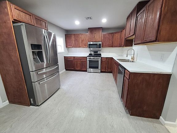 Remodeled home with new roof, upgraded electrical panel and plumbing. Large kitchen with stainless steel appliances and tons of cabinet space. Two laundry areas, one in master and another in garage. New carpet paint and vinyl plank flooring. Large fully fenced yard with two out buildings. Central heat and air. Move in ready!