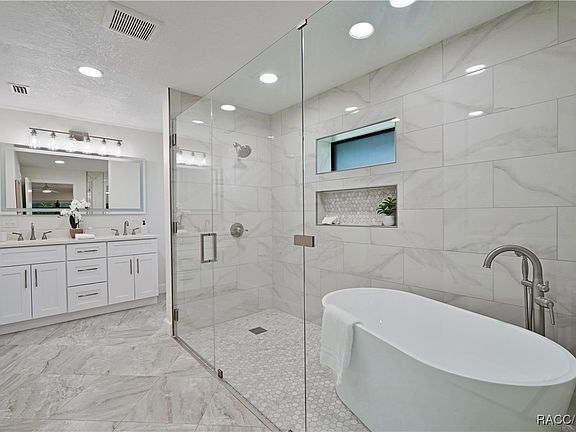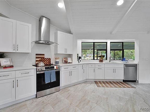 This charming 3 bedroom, 2 bath, waterfront property in Homosassa Springs awaits you. This delightful home offers waterfront views, direct access to the canal with it’s own boat ramp on premises, which is appropriate for boating and fishing enthusiasts. A spacious open living area, modern kitchen with brand new stainless steel appliances, and spacious bedrooms with luxurious baths for both the master and hallway bathroom. Enjoy the serene outdoor space, complete with a large screened-in patio and lush landscaping with large fenced in yard and wrap-around front driveway and 2 car garage.